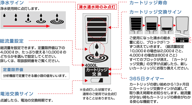 液晶表示機能で、カートリッジの交換時期もわかりやすくお知らせします。